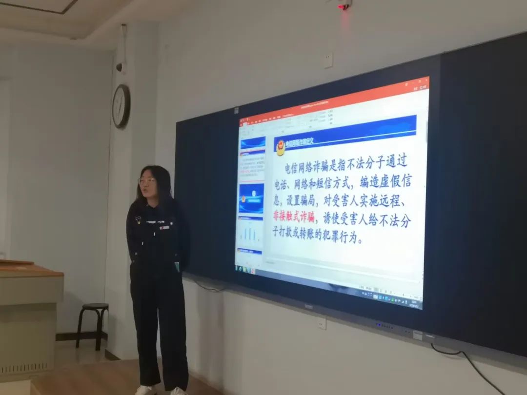 本次主题班会学院领导高度重视,结合实际情况积极创新讲解方式,一方面通过党建带团建进行宣讲,能够切实提升同学们的防诈骗能力,筑牢学生思想防线,让防电信网络诈骗常识深植学生心田;另一方面学院全覆盖宣讲,有助于推动学院反诈防骗良好氛围的形成,筑牢了安全防范的“防火墙”。