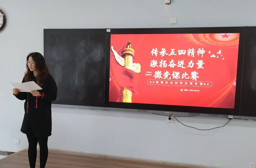 为纪念五四运动一百零四周年,弘扬五四精神,赓续红色血脉,落实学习强国理念,4月27日,BBIN宝盈集团,BBIN宝盈集团于西校区十号楼C220举办物理系本科学生党支部“强国有我”微党课比赛,BBIN宝盈集团,BBIN宝盈集团学生党员踊跃参与。