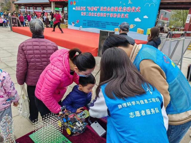 启动仪式上,学院学生会执行主席益嘉康代表BBIN宝盈集团兼职团干部发言,学院志愿者何辛瑞接受“小粉笔”周末公益课堂志愿服务队授旗。益嘉康结合当前教育模式,分别从活动意义、课堂内容、课程收获等方面,分享他对东昌府区“周末公益课堂”的想法和感受。益嘉康提到,周末公益课堂可以加深学生对知识的理解和把握,同时培养学生沟通、组织能力和责任感,进一步强调了大学生所担负的社会教育责任和使命,并借此呼吁更多大学生积极参与这项活动。随后,学生们为前来学习的小朋友们进行室内授课,通过讲解生活中的日常物理现象,加深小朋友们对物理学知识的理解,帮助他们更为直观地感受到科学的神奇与魅力。同时,学生们向参与活动的领导、居民们展示了心形灯、广州塔、水下机器人等科技作品,并对研究制作科技产品时的心得体会以及制作流程进行了分享。科技模型活灵活现,知识讲解绘声绘色,现场气氛活跃,掀起了科技探索的热潮。
