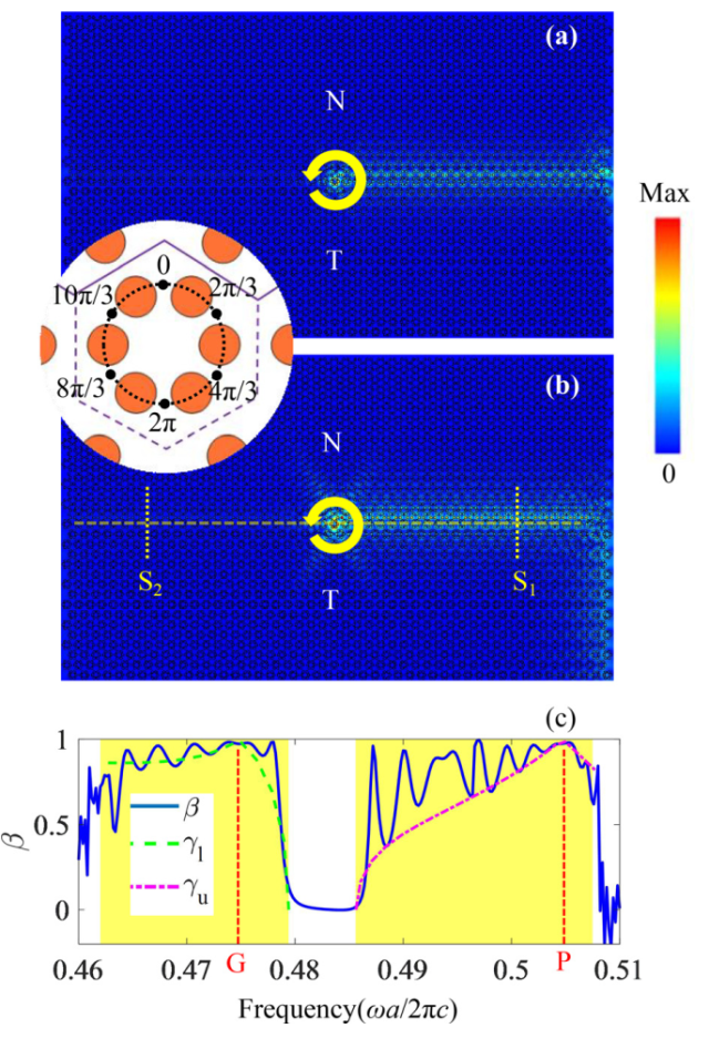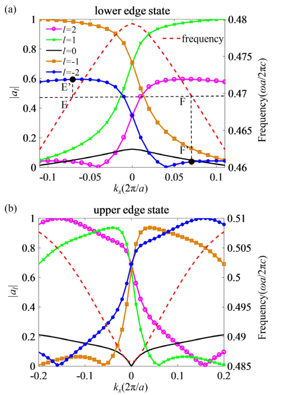 图2利用具有二阶轨道角动量的赝自旋光源激发螺旋边界态的单向传输